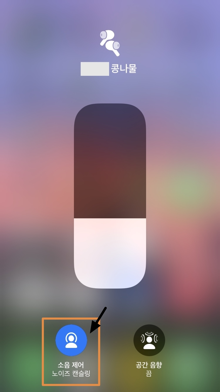 아이폰 제어센터에서 에어팟 프로 그림이 있는 음향 조절 영역을 길~게 눌러줍니다.