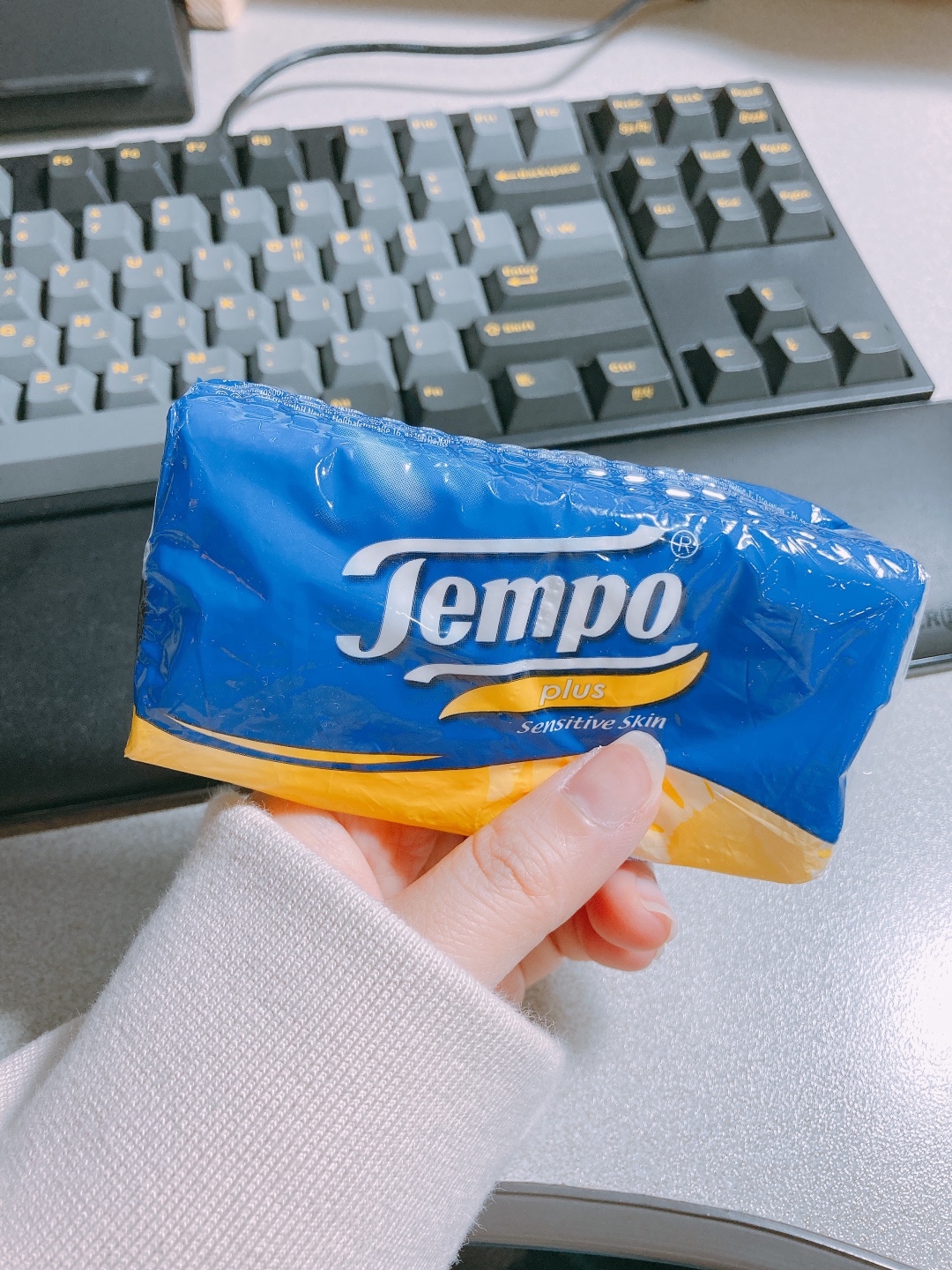 템포 티슈는 휴대하기 딱 좋은 사이즈로, 알레르기성 비염인 저는 가방이나 외투 주머니에 꼭 하나씩 넣어다녀요.