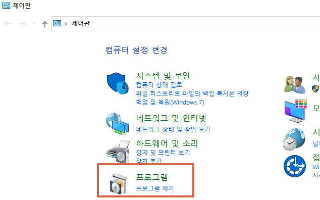 1. [제어판]에 들어가서 [프로그램 : 프로그램 제거]에 들어갑니다.