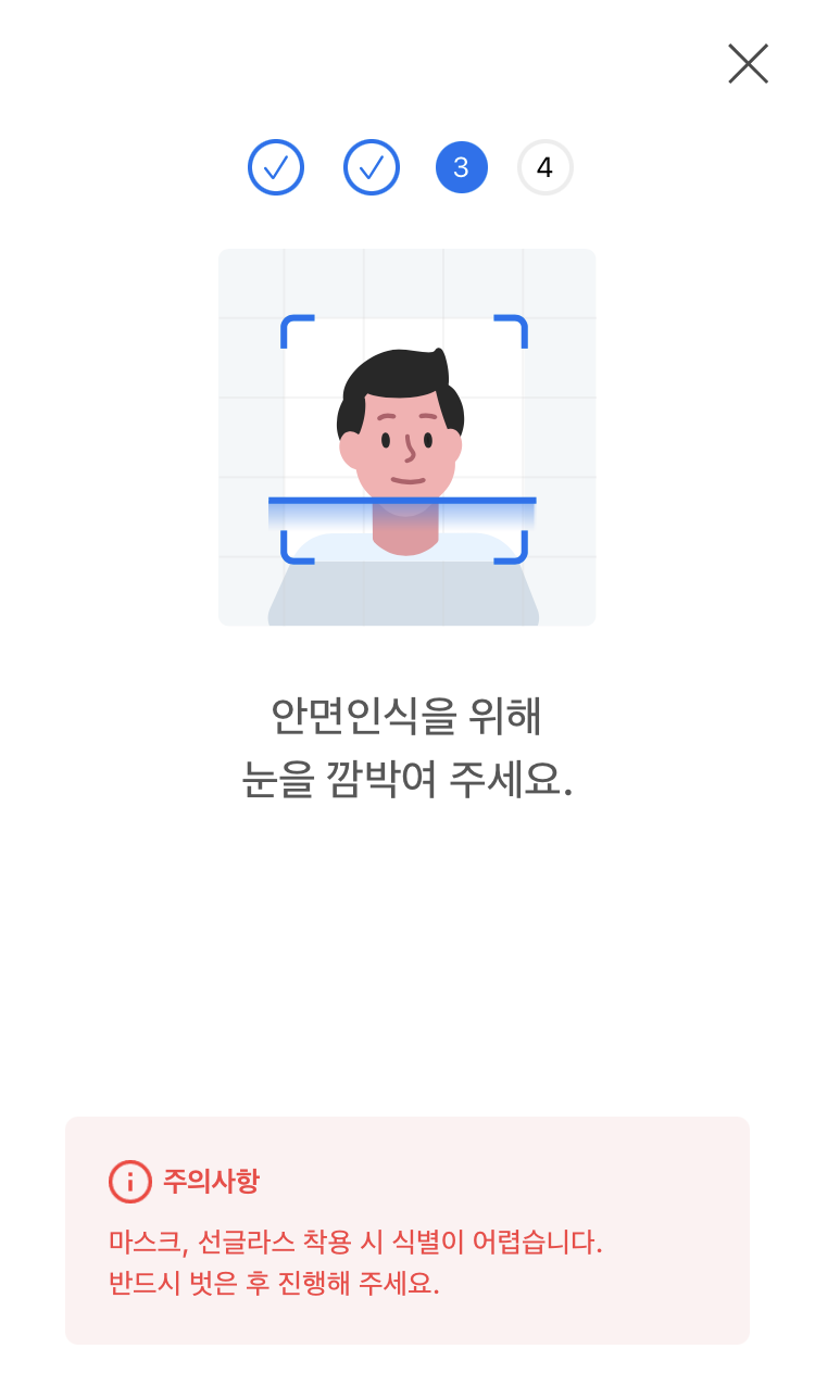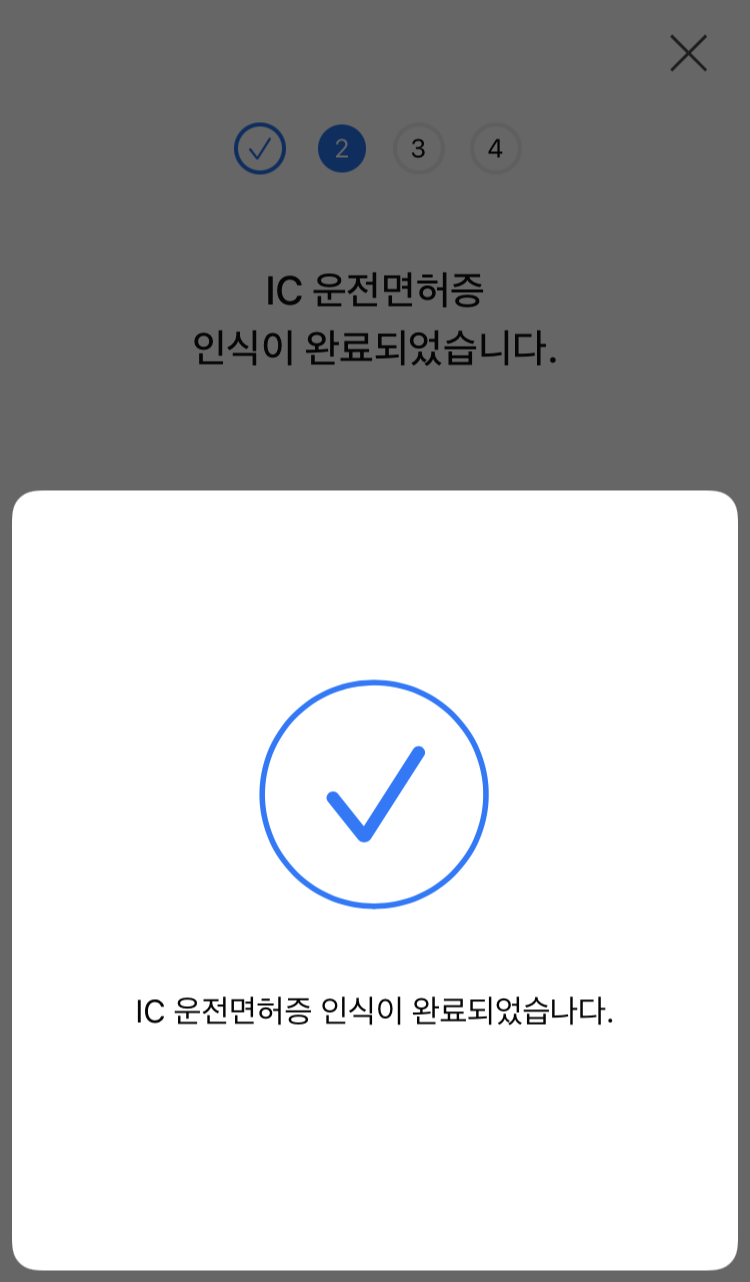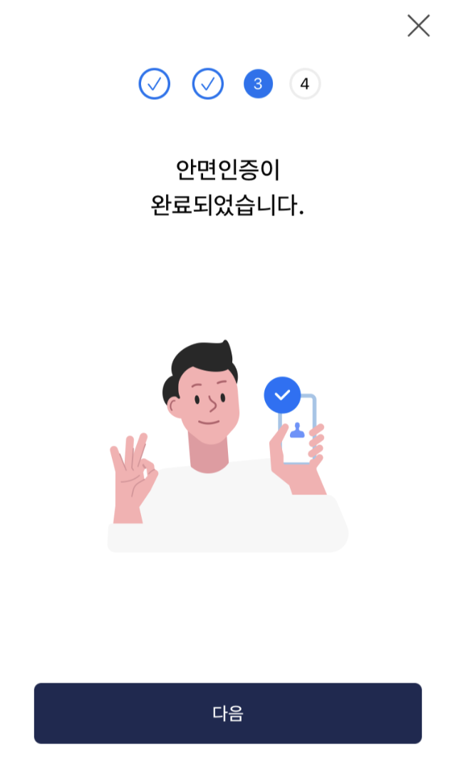 이때 조금 주의를 하셔야 하는 부분이 신분증에 등록된 사진과 본인의 실제 모습이 다르면 인식이 쉽지 않다는 것입니다!! 제 경우 안면인식을 할 때는 무표정이었는데 한 번 인식에 실패하여 IC운전면허증 사진과 같이 살짝 미소를 띠고 인식을 하였더니 통과했습니다.(쌩얼이라 그런 건 아니겠죠?)