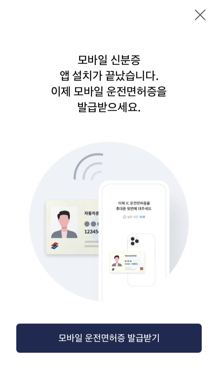 모바일 신분증 앱 설치가 완료되면 모바일 운전면허증을 바로 이어 발급합니다.