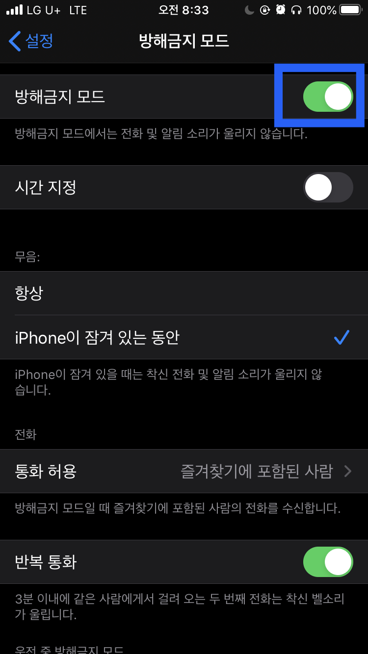아래부터는 방해금지 모드 꿀팁입니다~~